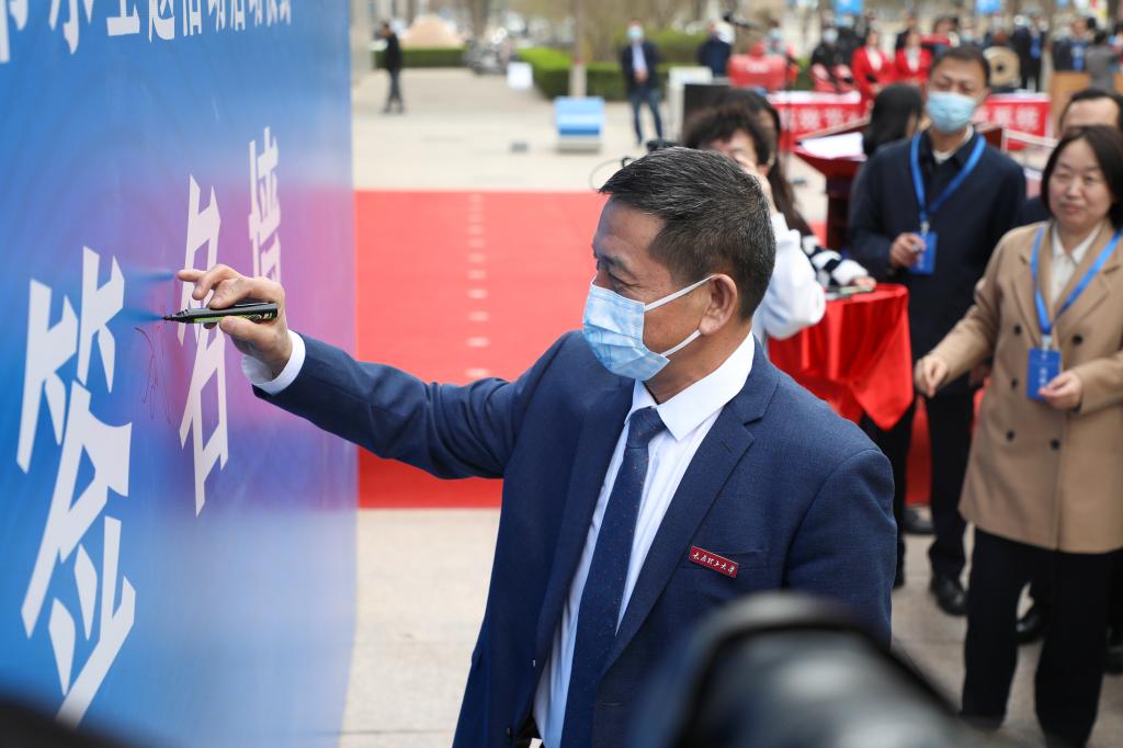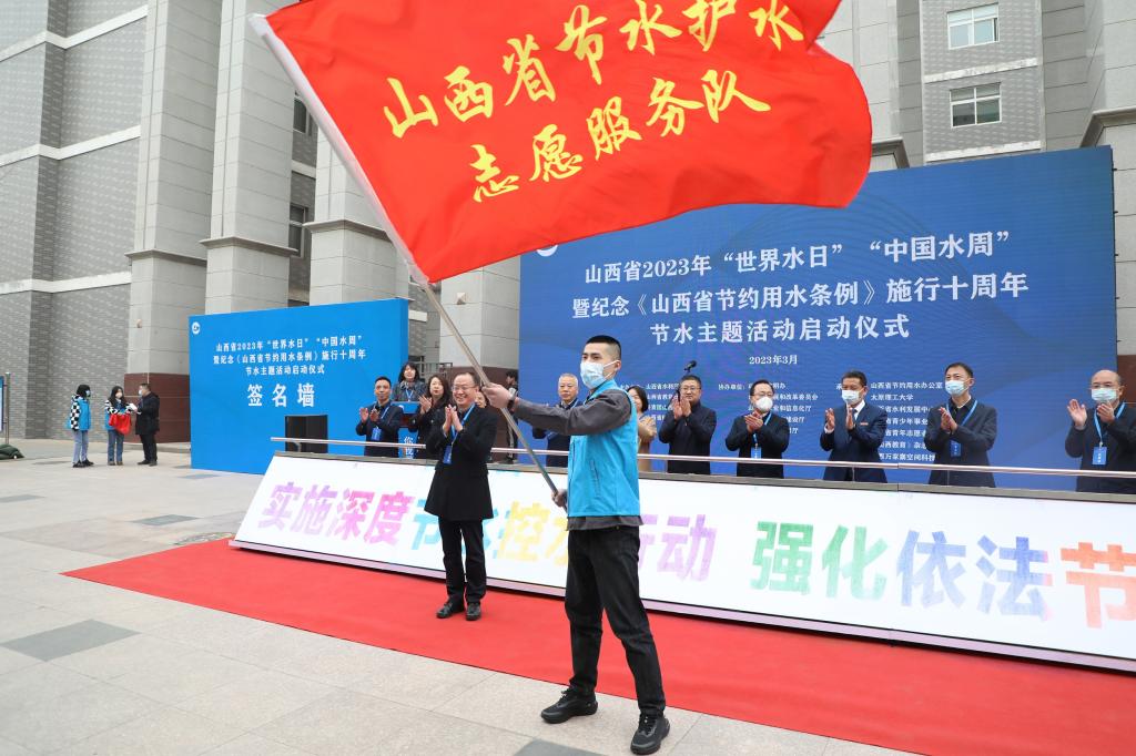 接下来,相关领导共同启动了节水主题宣传活动仪式,团省委副书记丁国栋向志愿者代表潘华振授予节水护水志愿者队旗,并在签名墙上签字留念。