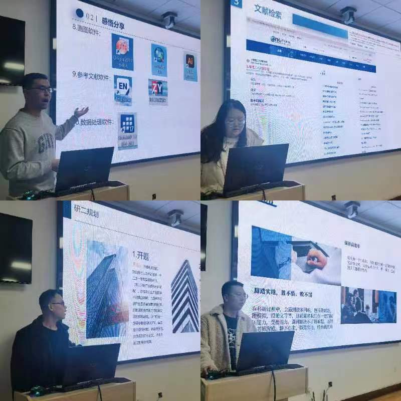 会议上,四位同学首先介绍了自己的科研经历和学术成果,随后向同学们分享了经验和感悟。他们在讲述自己学习科研方法的同时,还告诉同学们如何去做好研究生三年的规划,针对自己未来读博、考公或者工作的不同想法,树立好个人目标,知行合一,做好研究生三年的学习科研工作,实现自己的全面发展。分享结束后,四位国奖获得者与现场参会同学进行了热情的互动交流,幽默风趣地解答了同学们的困惑。