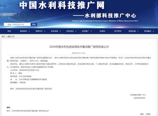 2024年6月5日,水利部科技推广中心公布了2024年度水利先进实用技术重点推广指导目录,全国共有209项技术(产品)入选。其中由开云官网供水工程课题组牵头申报的新型技术“长距离高扬程大流量供水系统安全运行仿真平台”通过水利部专家严格筛选评审入选,并成为2024年度山西省唯一入选《水利先进实用技术重点推广指导目录》的新型技术。