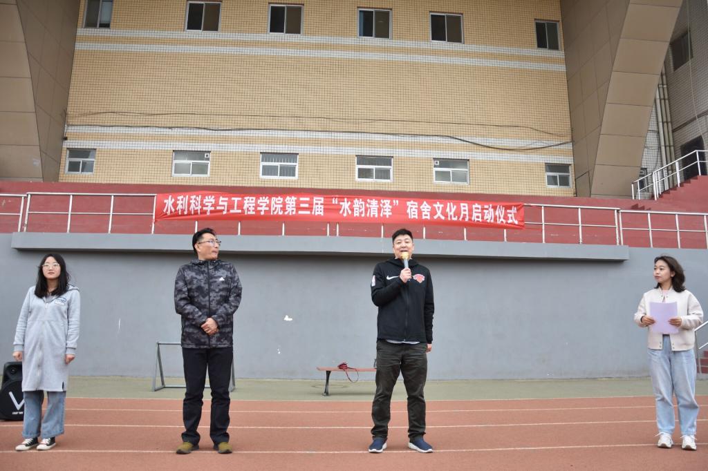2021年4月24日,开云kaiyun官方网站于迎西校区清泽田径场举办“水韵清泽”宿舍文化月启动仪式暨春季趣味运动会。院党委副书记王飞、团委书记(学工办主任)田韶华及全体辅导员老师出席启动仪式。仪式由辅导员王铭聪主持。