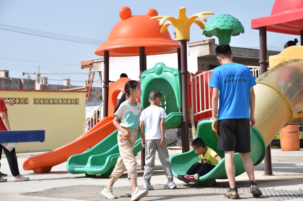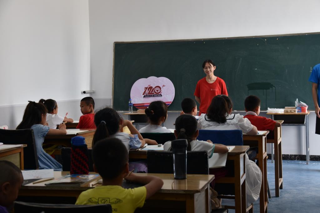 8日上午8点,实践队队员已准备就绪,在当地村委会等待各位家长与学生的到来。此次教学分别在五寨村的新旧村委会设有两个教学场地,将学生分为低年级组和高年级组两个班级开展教学:实践队员贴心地为孩子们准备了开云kaiyun官方网站团徽作为见面礼,希望孩子们可以立意高远,心怀鸿鹄之志。上午的教学主要为语文、数学、英语、美术等方面的指导,实践队员以严谨之精神,细心之态度,生动之语言,耐心之教导,为孩子深入浅出地讲解教学,并辅以适当延伸,在夯实知识的基础上,开阔孩子们的眼界。孩子们对世界充满了好奇和渴望,清澈地眼眸里满是求知的欲望。下课时间,孩子们在院子内放松身心,奔跑、跳跃、滑滑梯,挥洒汗水、彰显青春活力。