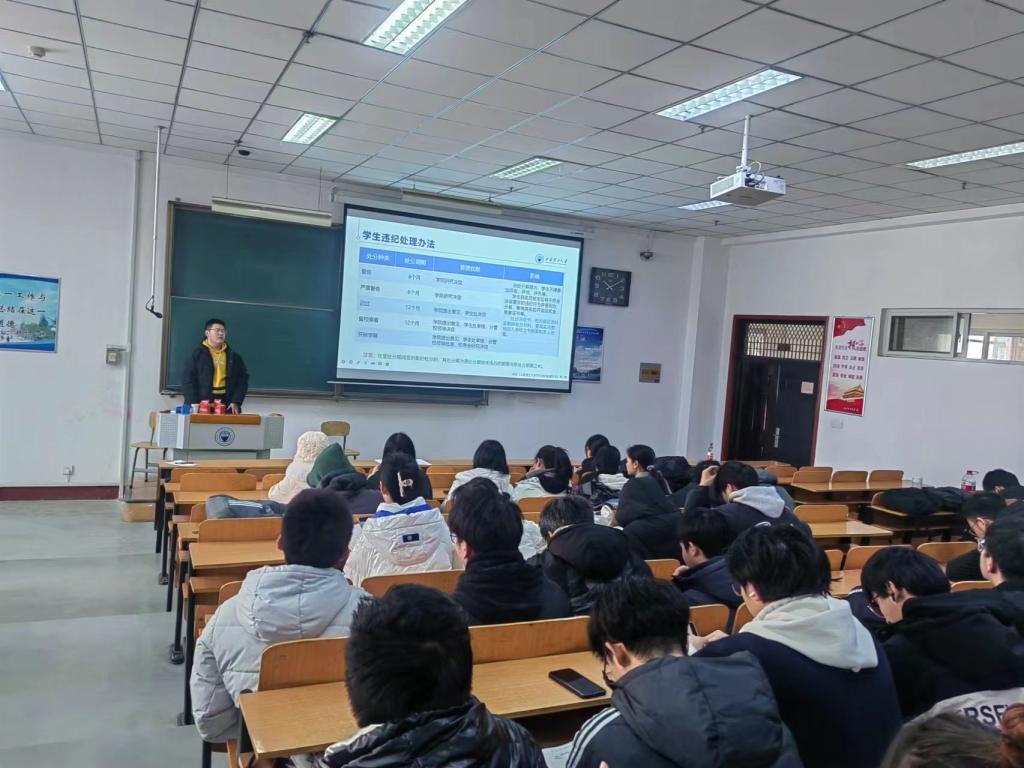 2024年1月5日,开云kaiyun官方网站在机械馆2006教室举行“严肃考风考纪 营造良好学风”大会,旨在严肃考风考纪,端正考试态度,树立诚信考风。学院学工办副主任杨杰,辅导员王泽宇,全体学生党员、本科学生干部、团员和群众代表共160余人参加会议。会议由杨杰主持。