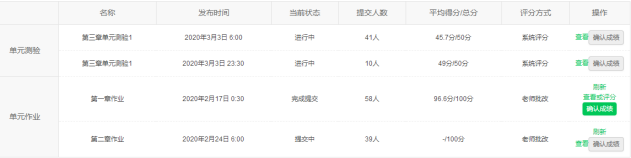 目前,第一章的作业已经全部完成,第二章的单元作业和第三章的单元测验正在进行中,对学生学习的引导和督促作用非常明显。